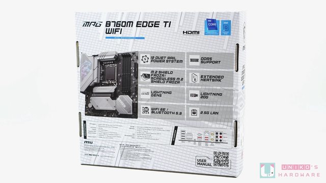 筆者最初看到這片 MSI MPG B760M EDGE TI WIFI 主機板時,目測外盒沒看到明顯標示的升