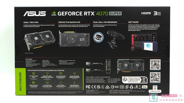 Dual GeForce RTX 4070 SUPER 包裝和外觀
