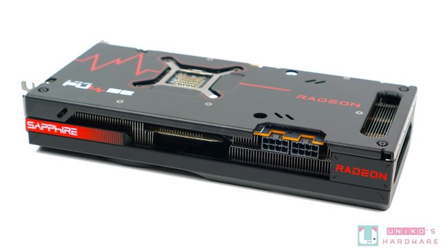 PCB 背後為金屬背板,提供散熱、保護、加固和美觀的功能。不得不提的是 SAPPHIRE 的黑