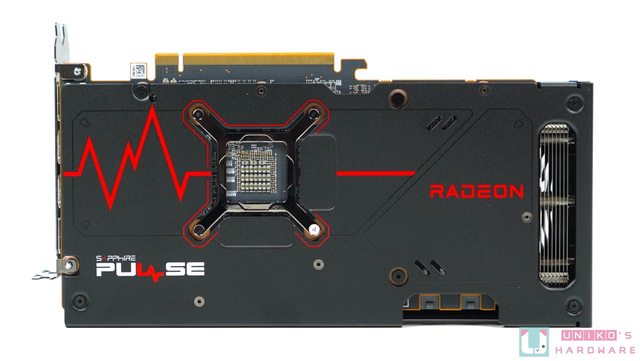 金屬背板上除了有大型的心跳起伏線條,也加入 SAPPHIRE PULSE (白紅色) 和 RADEON (紅