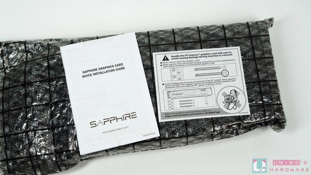 配件分別有一本快速安裝指南,和一張特別警告提示使用者要妥善保護顯示卡,避免在插入
