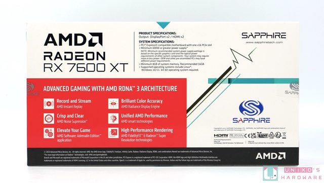 從 SAPPHIRE 的包裝設計可看到,PULSE RX 7600 XT 16GB 與 PULSE RX 7600 8GB 沒有什