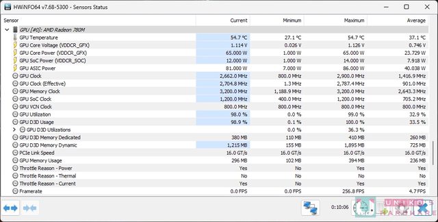 觀察溫度變化,跑 3DMARK TIME SPY 燒機,溫度數據透過 HWiNFO v7.68-5300 觀察。