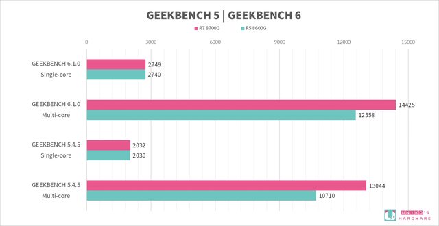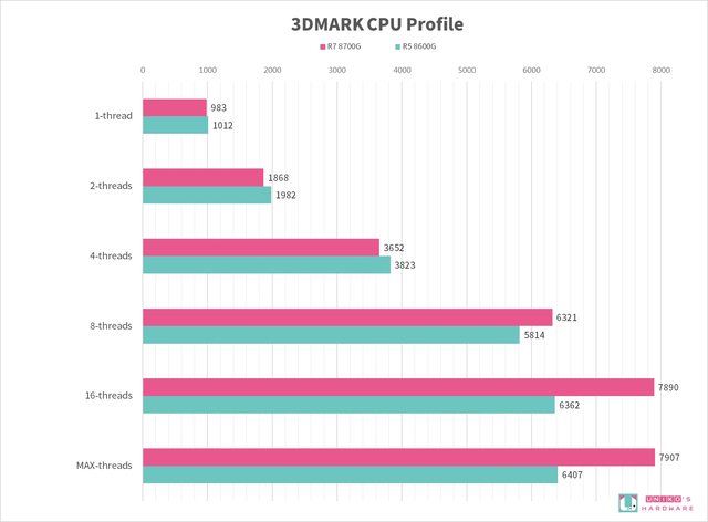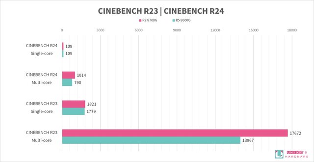 R7 8700G 和 R5 8600G 單核心性能幾乎相同,核心數的差異較明顯罷了。