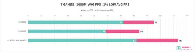 主要比較 R7 8700G、R5 8600G 和 RX 6400 4 GB 顯示卡。R7 8700G 幾乎全部遊戲都可以