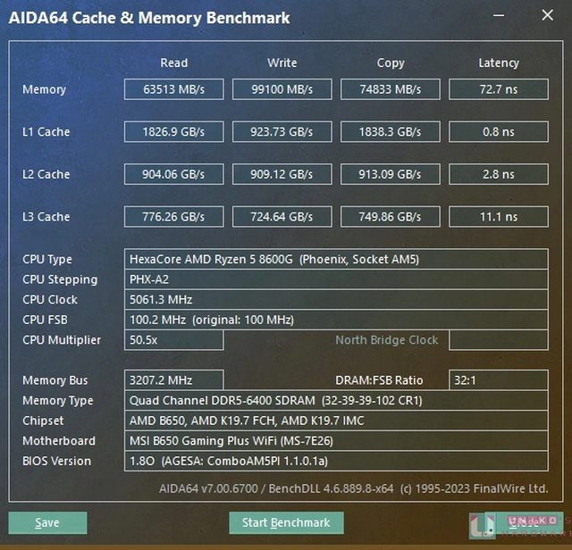 搭配測試零組件,主機板使用 MSI B650 GAMING PLUS WIFI,記憶體使用 G.SKILL Trident