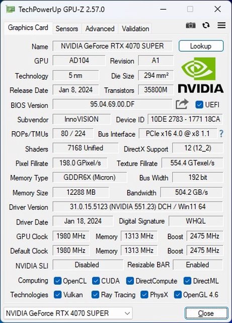 顯示卡:INNO3D GEFORCE RTX4070 SUPER TWIN X2