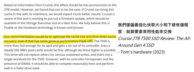美光表示會用新韌體改善,但我不抱太大期望就是(看看MX500新版的慘況)