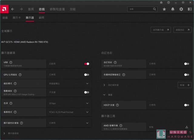 電腦可以到顯示卡設定裡面關閉 HDCP,我們使用 AMD RADEON RX 7900 XTX 示範,可以在