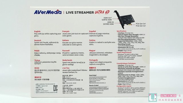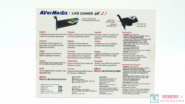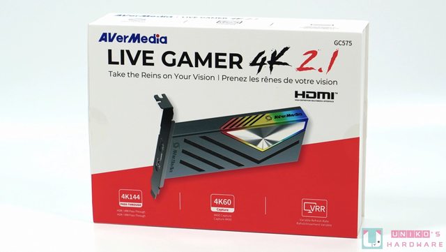 包裝正面可以看到最高直通規格 4K144,擷取最高 4K60,另一個重點是支援 VRR 可變更新