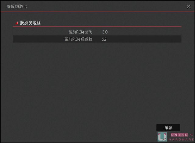 設定頁籤,可以進行軟體更新、韌體更新,也可以確認擷取卡的 PCIe 版本和通道,實際上
