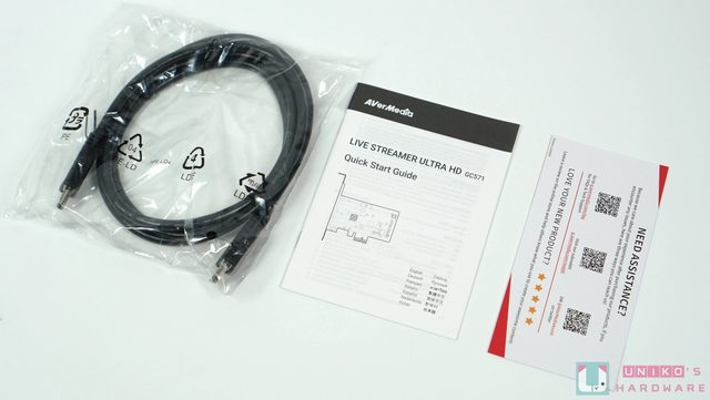 包裝內除了擷取卡本體,還有附上一條 ULTRA HIGH SPEED 認證 HDMI 2.1 線材,不管是連