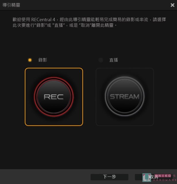 RECentral 可以擷取影像或是直播,設定只要透過軟體的引導精靈就能完成,對新手真的友