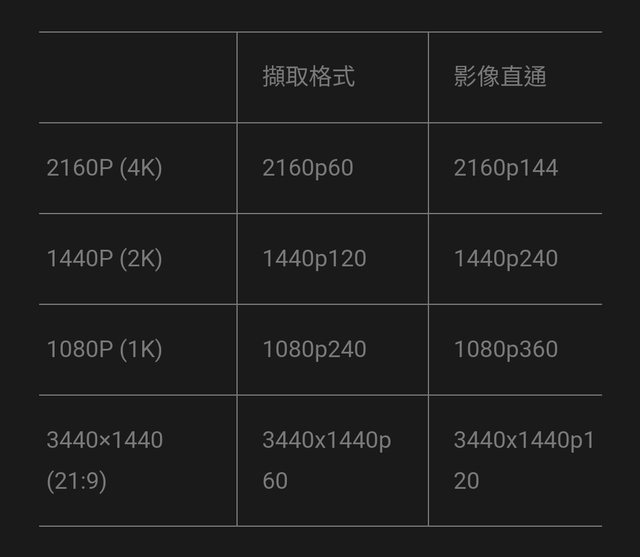 6:9 外,還可以看到 21:9,因為我們的顯示器有 DSC 顯示串流壓縮,所以最高只能跑到 4