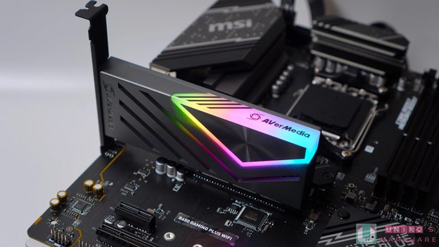 介面使用 PCIe Gen3x4,單 Slot 卡,內建 RGB 燈光設計,可以透過 AVerMedia Gaming U