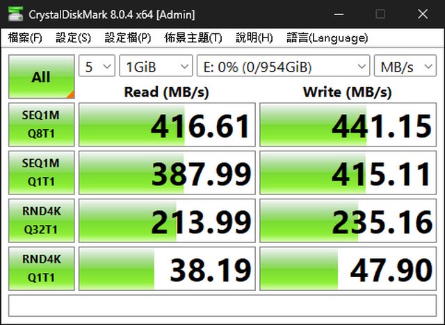 USB3.2g2(10Gb):忘記抓後半段速度圖,不過跟U4差不多掉到4xx