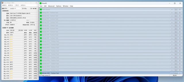 功耗 290W~300W 燒機30分鐘後最高溫約92