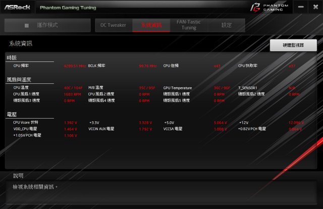 華擎自家監控軟體Tuning PG版本