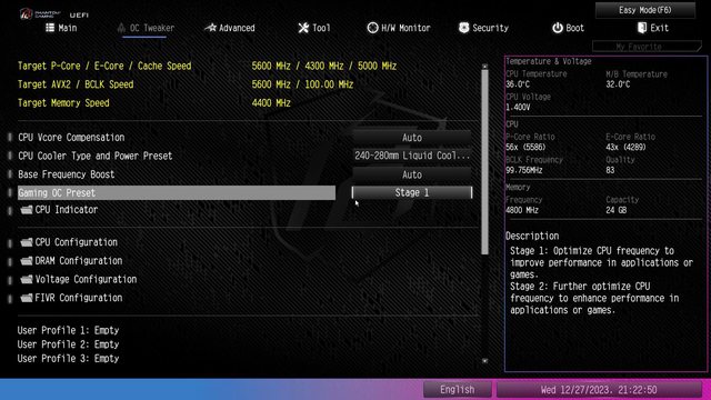 超頻調校頁面有許多調整功能以及快速模式可以設定