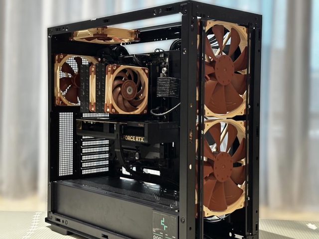 所有貓頭鷹風扇安裝完成,暫時先用標準電源下置模式,加上側邊14cm三連風扇共9顆風