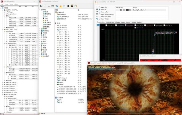 版風冷、RTX4080 Super顯示卡,其中i7-14700k除了調整PL2為250W外接為預設值,室內