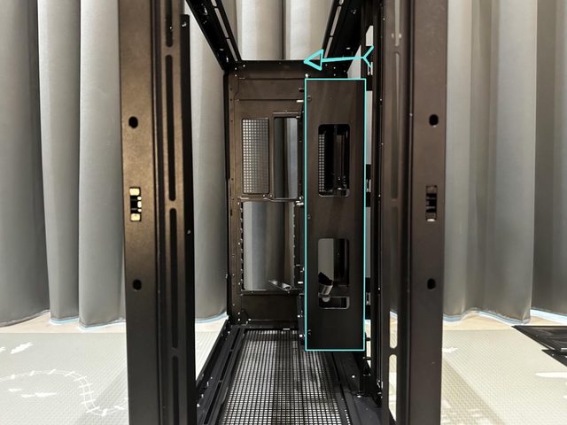 源前置模式需要用到的電源支架預裝在機殼前上方。