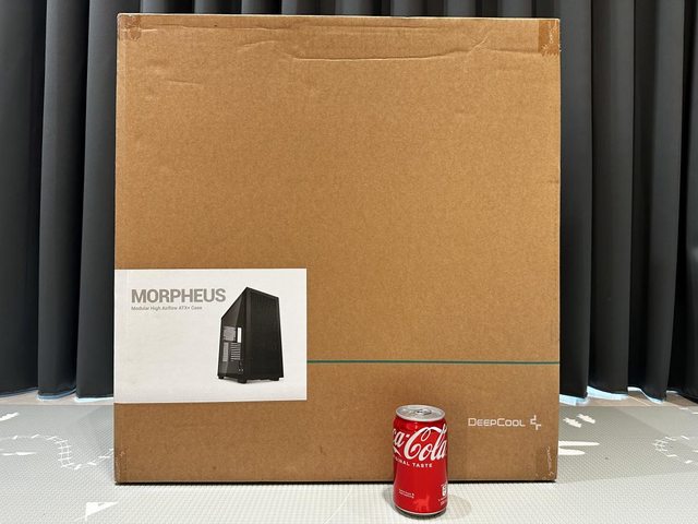 白色產品型號貼紙風格,以330ml的可樂罐當比例尺不難看出Morpheus的巨大尺寸。