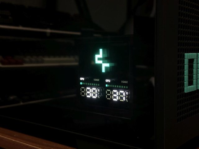 機殼內建處理器及顯示卡使用率、溫度顯示面板,九州風神LOGO在面板通電後還會發亮。