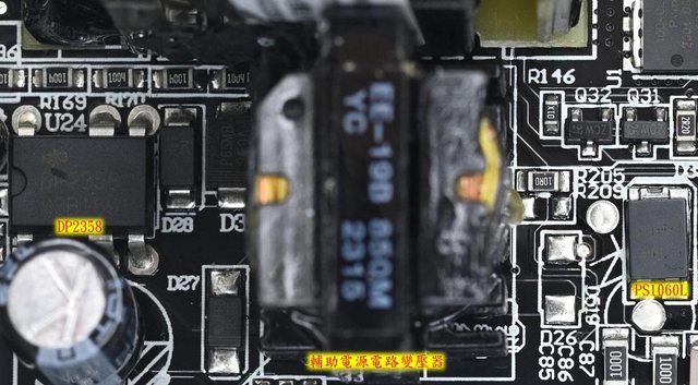 ○主電路板背面沒有任何元件,焊點做工良好,於二次側區域加裝金屬板,隔板於主電路