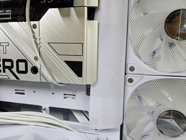 顯卡直立架與風扇間剛剛好,再壓迫可能就要改1215風扇了