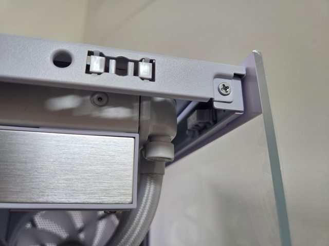 丄蓋鬆掉兩顆螺絲後,可以整片移除,方便冷排裝卸