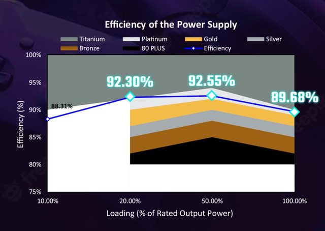 為92.93%),皆達到鈦金等級要求的20%負載時92%以上轉換率,且除了750W外在50%負載時