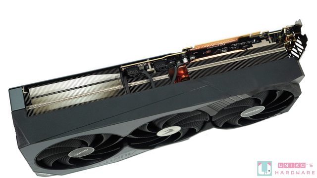 ‧大塊的均熱板覆蓋記憶體和核心晶體,另使用了多達 12 根熱導管把均熱板的熱力迅速帶