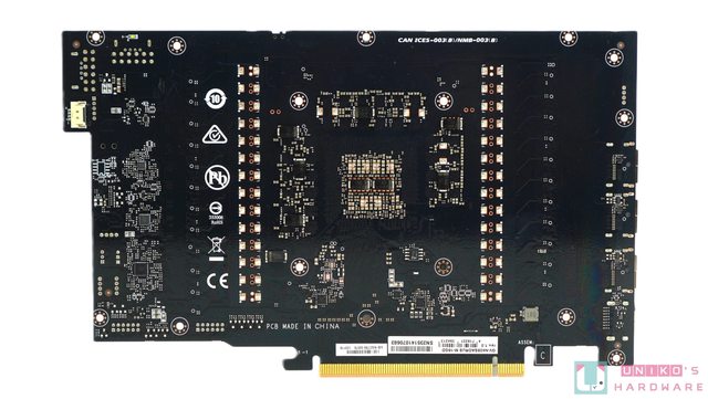 ‧顯示卡的底部留有巨大的排熱空間,內部的線材接頭也集中在此,這對於拆卡來說非常友