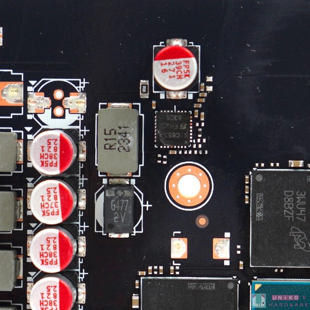 ‧供電模組、供電電感、輸入電容、輸出電容等等,甚至是 16-PIN 的輸入電感,技嘉都沒