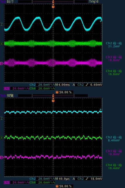 31.2mV/18.8mV/16.8mV;於純12V全負載輸出下12V/5V/3.3V各路低頻漣波分別為