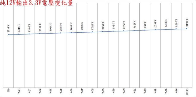 ○偏載測試,12V維持空載,測試3.3V滿載、5V滿載、3.3V/5V滿載的3.3V/5V/12V電壓變