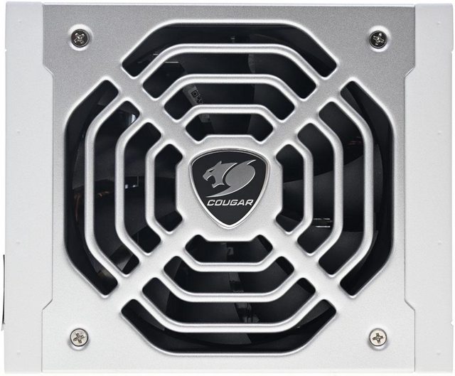 ▼直接在安裝於外殼的銀色鋁合金板上沖壓風扇護網,中間有COUGAR商標銘牌