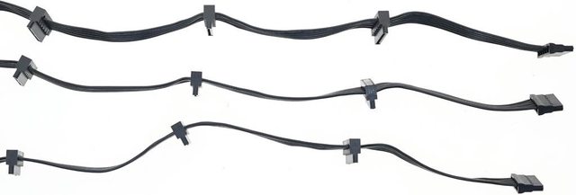 ▼3條SATA黑色帶狀模組化線路,提供9個直角SATA接頭及3個直式SATA接頭,至第一個接