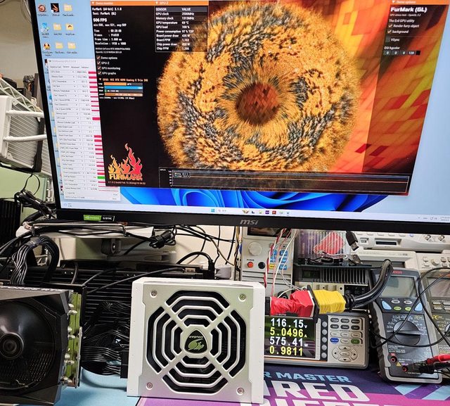 ▼用隨附的12VHPWR模組化線材連接MSI GEFORCE RTX 4090 GAMING X TRIO進行測試