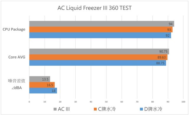個人是推測三款水冷都採用類似的風壓風扇,而AC III的P12 ARGB風扇轉速比較低,風扇