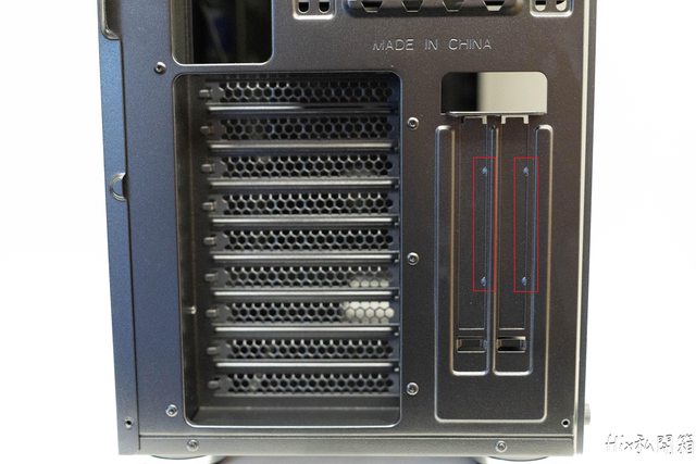 後方一覽圖,總共9個可拆卸式PCI槽,一直雙槽的直立位