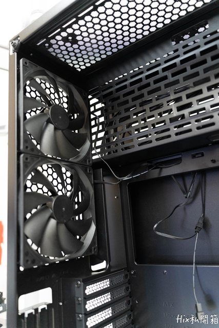 外加可看到電供位的鎖點以及內附的雙120mm風扇