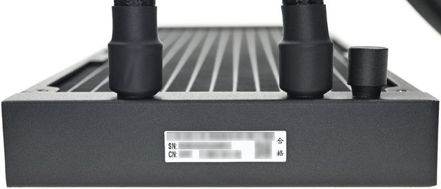 ▼鋁製水冷排尺寸456×140×30mm,可裝3個140mm風扇,水冷排進/出水管位於同一側,
