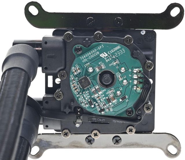 ▼水冷頭黑色方形部分裡面的燈條電路板上面有AURA控制IC