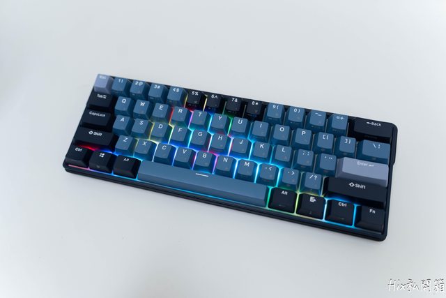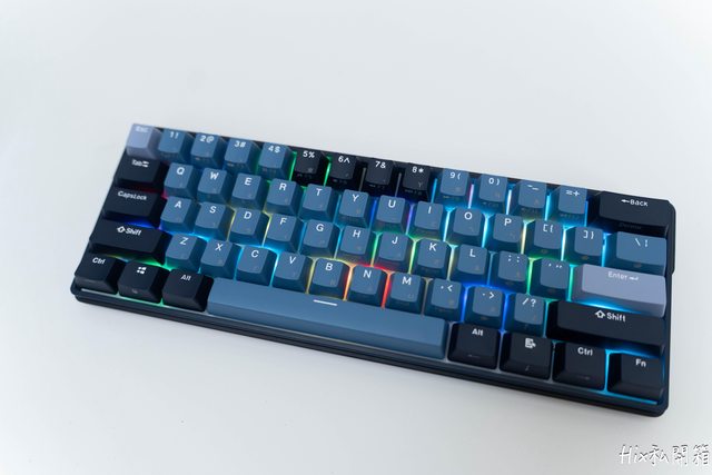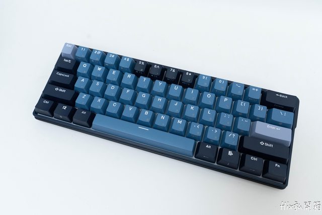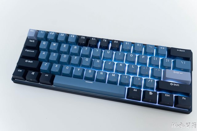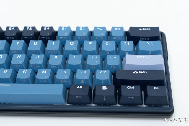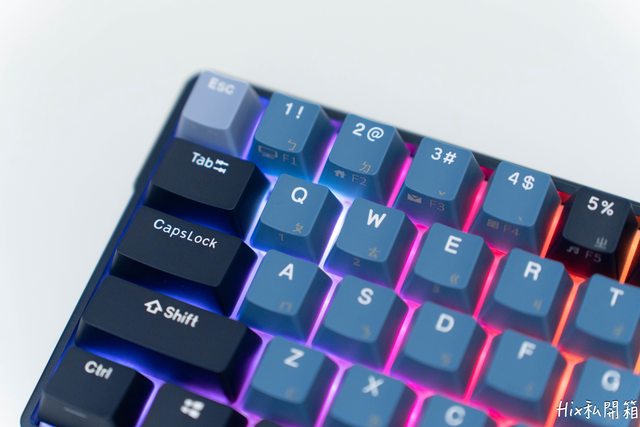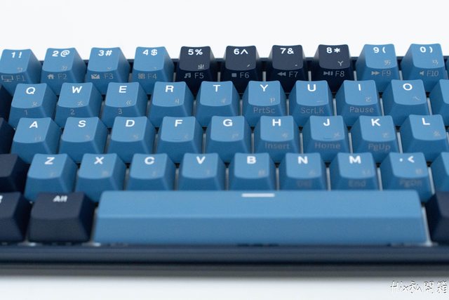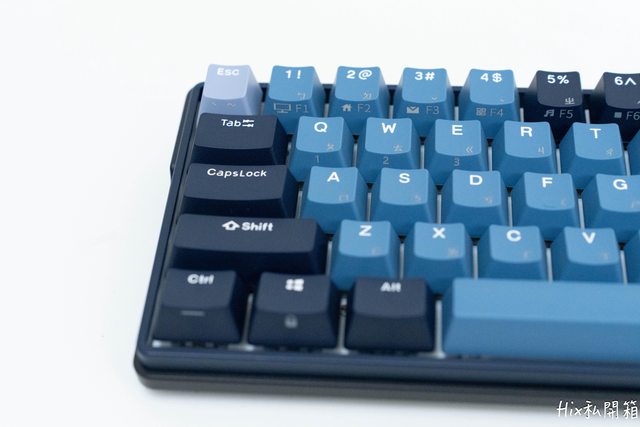主鍵區主要是以淡藍色,修飾鍵區則以深藍色為主,功能區則是深淺色交叉