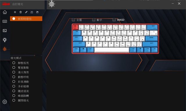 這邊可更進一步的自定義燈效,各區的燈效可以分開設定