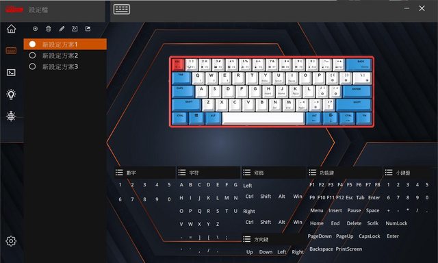 可以看到各顆鍵帽有將相關熱鍵印在側邊供使用者參照之用