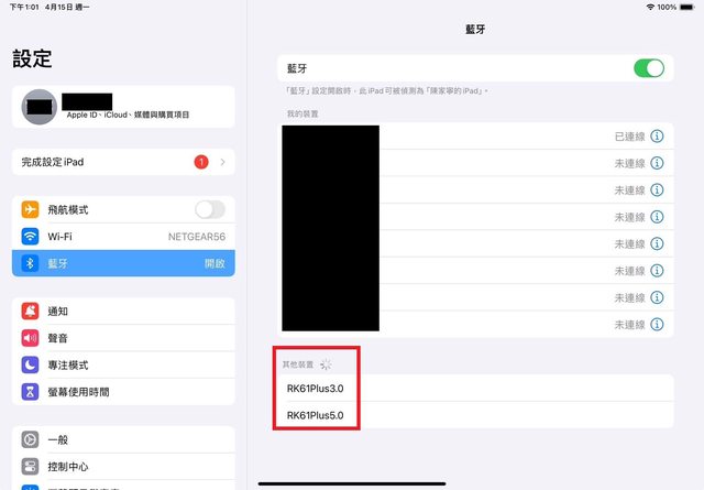 若是連接iPad可以看到有一個RK61plus 3.0及5.0可選擇
