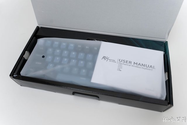 盒裝打開後是熟悉的霧裝包裝袋,之前開箱的較大型鍵盤如H81是用防塵蓋當作覆蓋